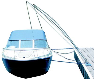 Ideal for protecting boats up to 33′ in non-tidal areas from damage caused by wind and wake. These fiberglass whips act as a spring to maintain your boat at a safe convenient distance from your dock. Manufactured from solid fiberglass rod and wrapped in three additional multi-stage, cross wound fiber layers. Impervious to UV degradation, cold or heat. Unique line tensioner for easy, one handed operation. Complete set of two Premium Mooring Whips Mounting hardware and spring lines included. Sold as pair