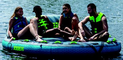The Compound Towable offers a unique feature: you can deflate the backrest and store it with the closing zipper to create a flat deck towable. This design innovation allows for both comfortable riding and a streamlined flat deck for different towing experiences.