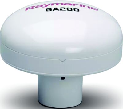An external antenna, suitable for improving the reception of the internal GPS/GNSS receivers of compatible Raymarine chartplotters, AIS devices, and VHF radios.