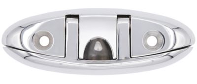 Mirror-polished, premium folding cleat provides a low-profile, ergonomic design for a sleek appearance while minimizing trip hazards. Constructed of corrosion resistant cast 316 Stainless Steel. Surface mount; no cut-outs or hole saws required. Fasteners not included.