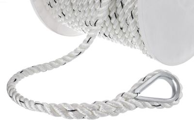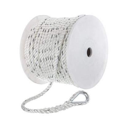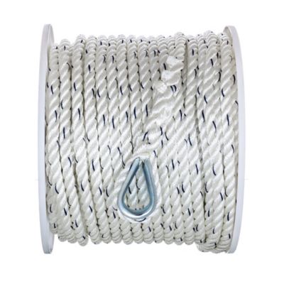 This Seachoice Premium 3-Strand Twisted Nylon Anchor Line With Tracer is an outstanding choice for worry-free anchoring. The line’s 3-strand construction enhances its durability and reliability, and the integrated tracer lets you monitor wear over time. This extremely strong white line is designed to absorb sudden shock loads so it can withstand the rigors of harsh marine environments. This line comes with a convenient galvanized steel thimble onto which an anchor can easily be attached. This line is 1/2-inch x 200 feet long. Seachoice is committed to delivering quality marine accessories and OEM replacement parts to satisfy fishing, boating and watersports enthusiasts worldwide. Seachoice is run for and by boaters, offering a wide-ranging product line while remaining affordable.