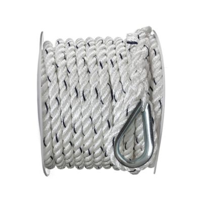 This Seachoice Premium 3-Strand Twisted Nylon Anchor Line With Tracer is an outstanding choice for worry-free anchoring. The line’s 3-strand construction enhances its durability and reliability, and the integrated tracer lets you monitor wear over time. This extremely strong white line is designed to absorb sudden shock loads so it can withstand the rigors of harsh marine environments. This line comes with a convenient galvanized steel thimble onto which an anchor can easily be attached. This line is 3/8-inch x 50 feet long. Seachoice is committed to delivering quality marine accessories and OEM replacement parts to satisfy fishing, boating and watersports enthusiasts worldwide. Seachoice is run for and by boaters, offering a wide-ranging product line while remaining affordable.